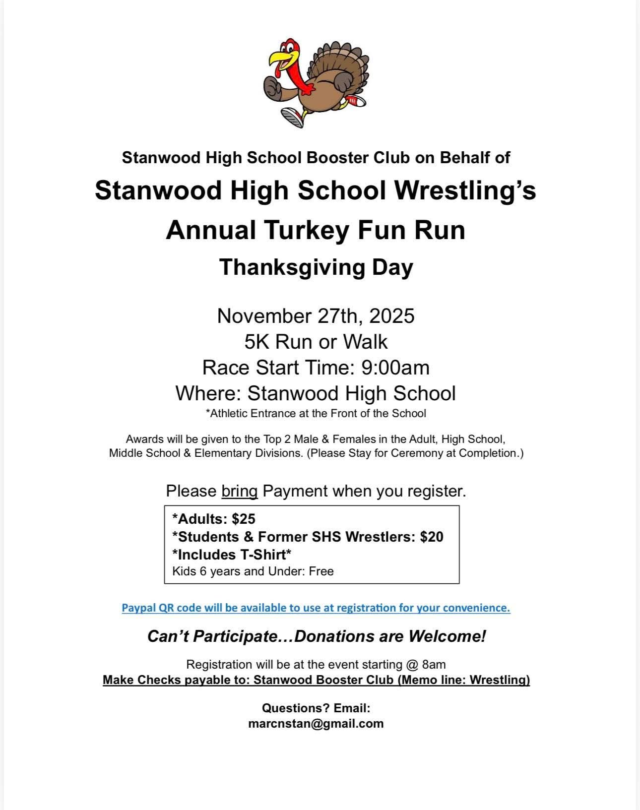 SHS Turkey Fun Run 5K Stanwood High School Stanwood Thursday, November 27, 2025 9 am